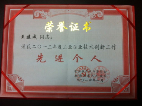 為樹立榜樣,市委市政府決定,授予一批工業立市先進單位,其中,牡丹江金盟電器有限公司獲此殊榮。同時,王建成總經理被授予“技術創新先進個人”稱號。